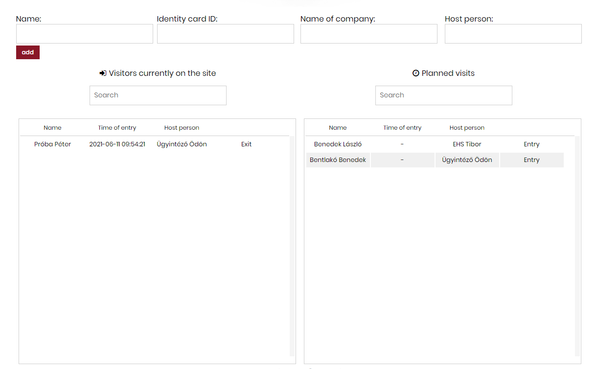 The employee providing the concierge service can record the exit and entry of visitors to the site.