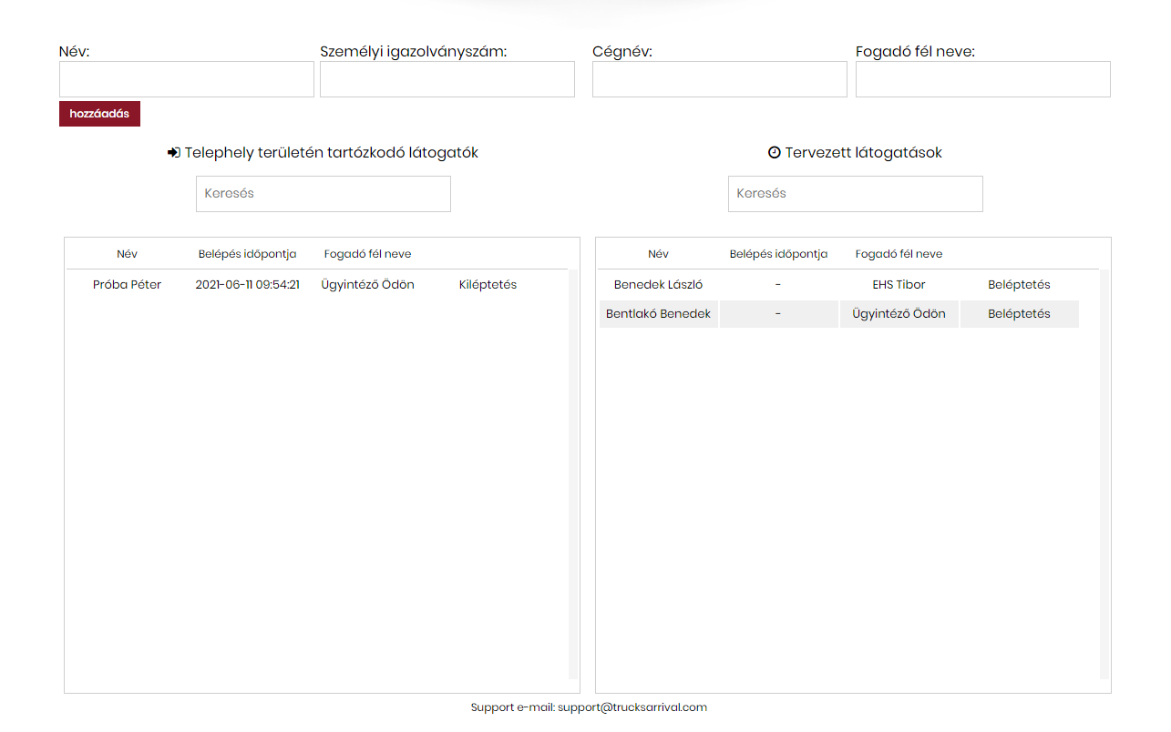 A porta szolgálatot ellátó munkatárs rögzítheti a telephelyre érkező látogatók ki és belépését.